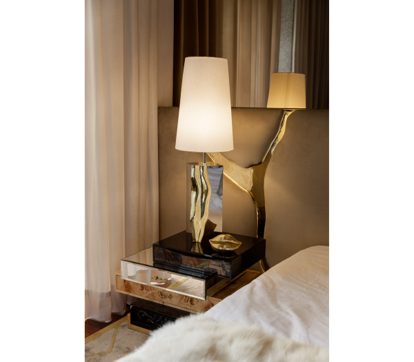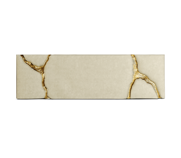 Lapiaz headboard takes exceptional craftsmanship and contemporary design to a new realm. The organic features of this upholstered headboard are achieved through the manual fitting of gold-polished brass into the velvet structure. A platform bed can be added under request and it can accommodate a range of mattress types.
