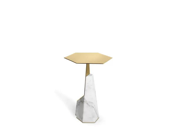 The Myllo Side Table showcases luxury and modern aesthetics with its sleek design crafted from polished brass and Carrara marble. It’s a versatile work of art that adds an elegant flair to any interior, serving as a perfect platform for decorative items. It’s more than just a side table; it’s an epitome of contemporary sophistication, destined to become the focal point of your living space.