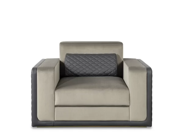 The Thomson Single Sofa was born from the finest materials, such as velvet, leather, brass, glass, and wood. It features a sophisticated design that is both timeless and elegant. With refreshing details that never go out of style, this luxury single sofa is reminiscent of the art deco era. A unique piece that will elevate any living room with its glamorous lines and impeccable craftsmanship.
